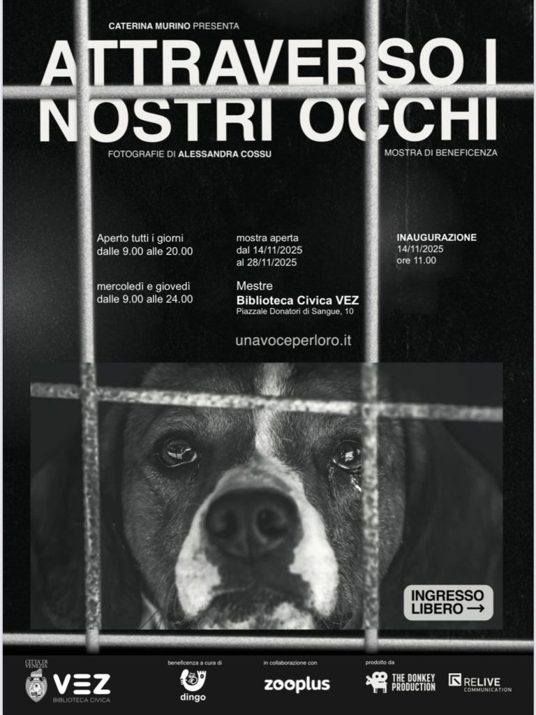 - Mostra “Attraverso i Tuoi Occhi”: Biblioteca Civica VEZ, Piazzale Donatori di Sangue 10, Mestre (Venice).