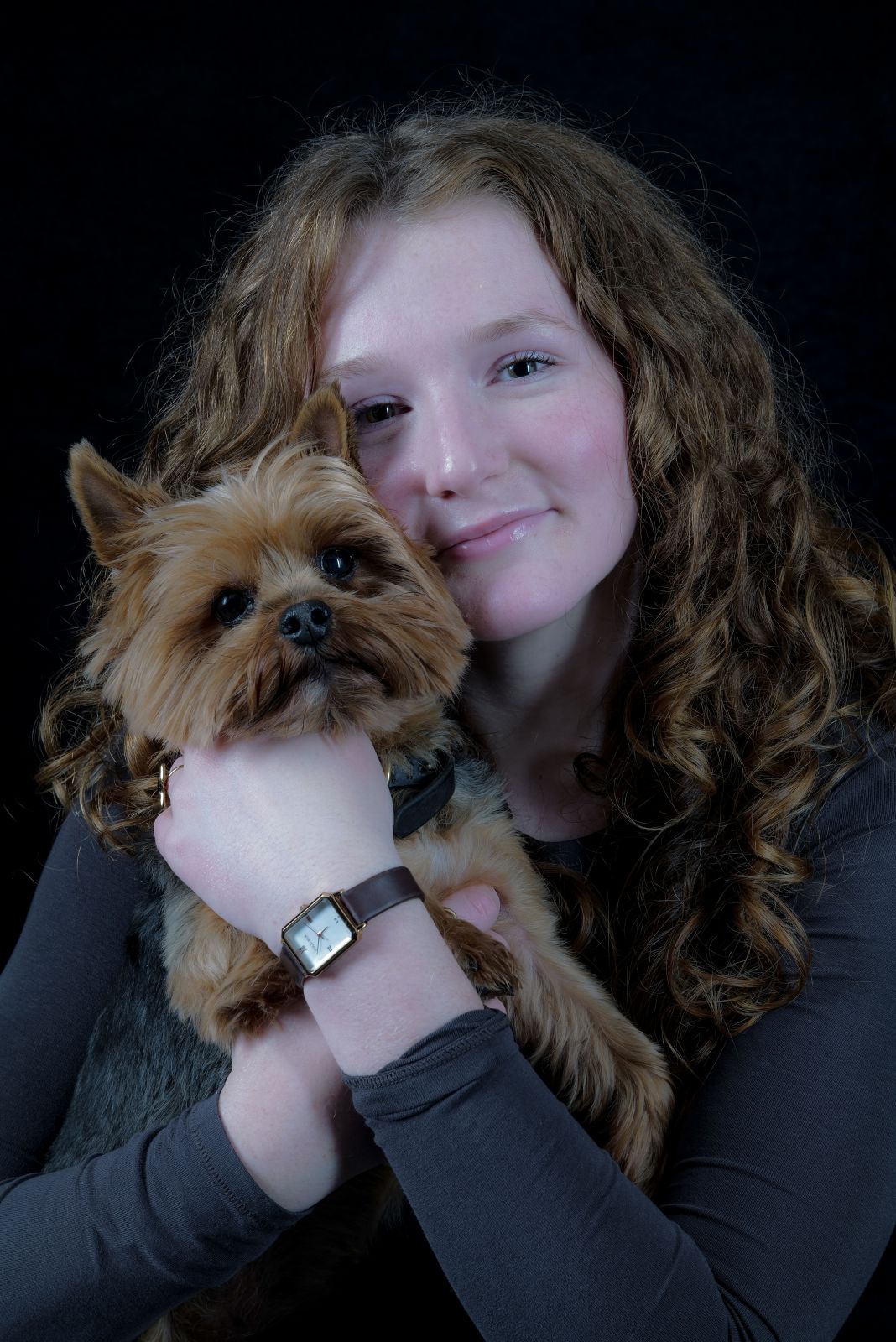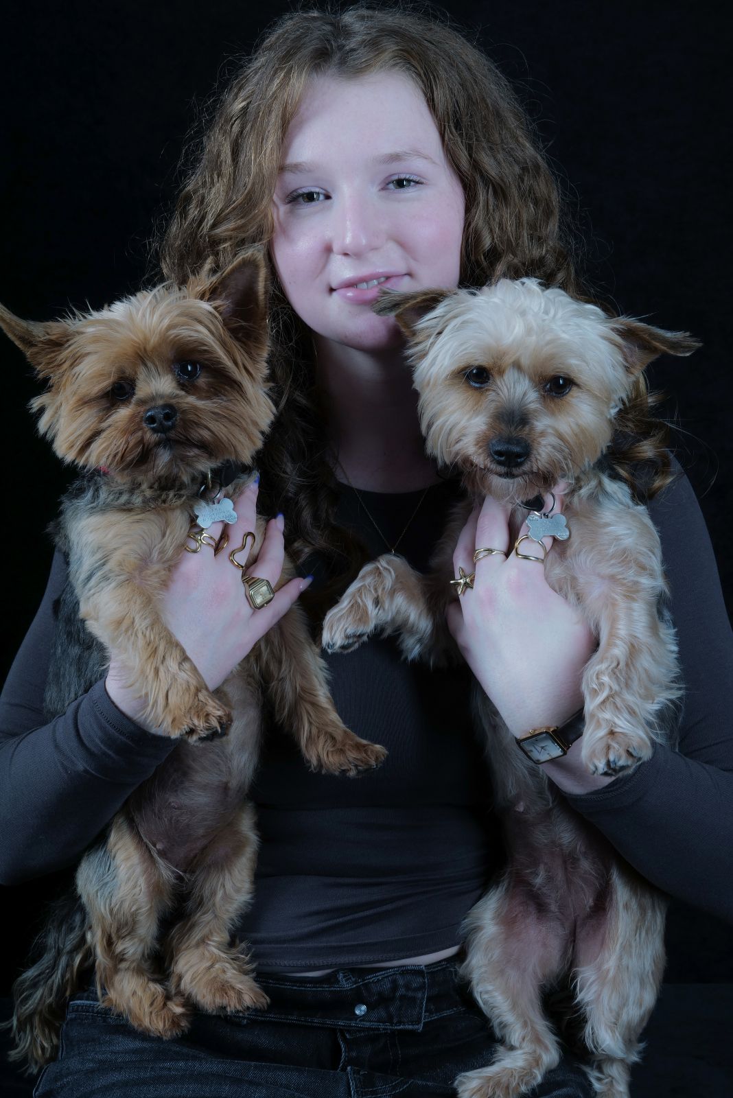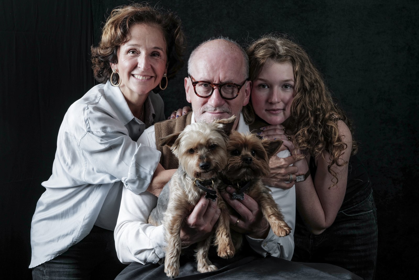Daughter Maddalena, with their Yorkshire Terrier puppies Baila and Tosca, along with mother Catherine and father Dominic.