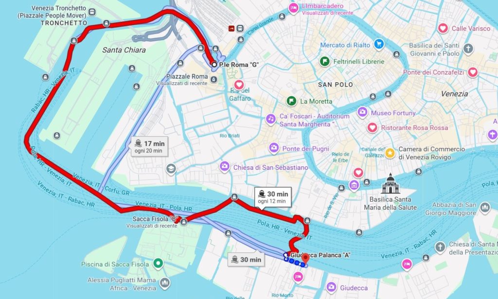 - Take the Line 2 vaporetto, direction Sacca Fisola / San Zaccaria (the line that does not enter the Grand Canal).